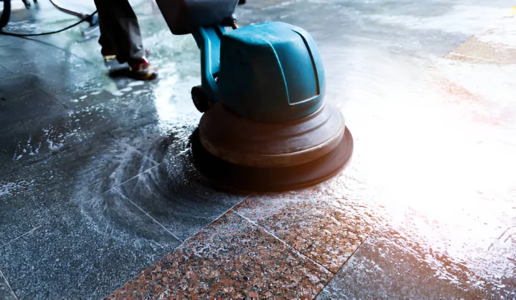 تنظيف تمهيدي: التخلص من الأوساخ والغبار على سطح الرخام.